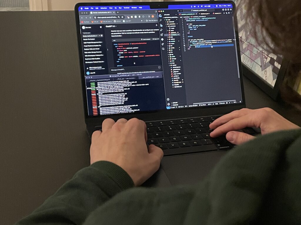 Pourtant, pour Jules Pascual-Ramon, développeur web en alternance, l’IA n’est pas encore une menace concrète, mais plutôt une opportunité pour enrichir la palette d’outils des développeurs : « avant, on cherchait les solutions sur Google, alors que maintenant on se dirige plus vers Chat GPT ou utilisons GitHub Copilot. Ça nous fait gagner en temps et donc en productivité »