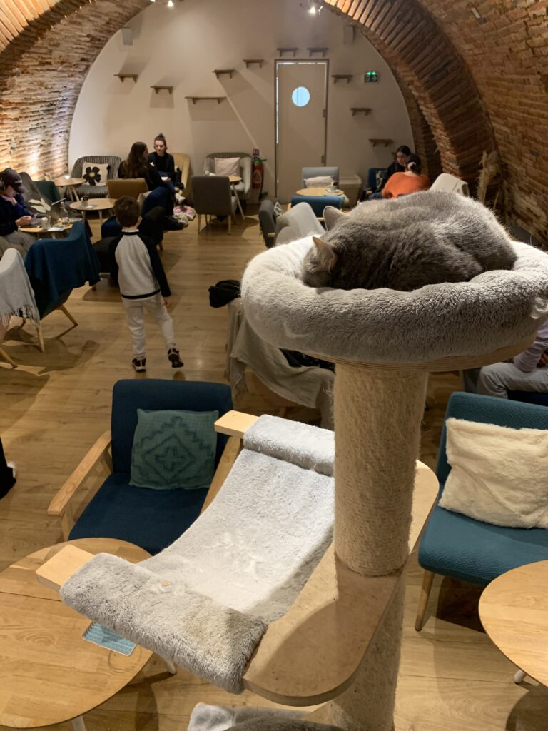 C’est entre les quartiers d’Esquirol et du Capitole que s’est créé en 2016 Chapristea, café à chats engagé qui opère en collaboration avec l’association le Chat libre. Créée en 1993, cette association agit pour la protection des chats errants sauvages et contre la misère animale. Le concept de « Café à chats » ne se limite pas simplement à offrir un endroit où les clients peuvent boire une boisson en présence de félins. Il s’agit avant tout de créer un espace harmonieux et apaisant où le bien-être animal est au cœur de la démarche.